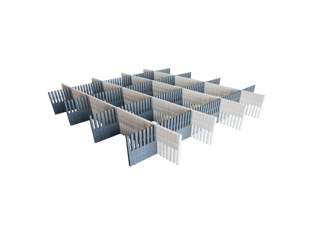 - Medzery v zásuvkách sú perforované s rozstupom 3 mm, čo vám umožňuje vytvoriť si presne taký priestor, aký potrebujete