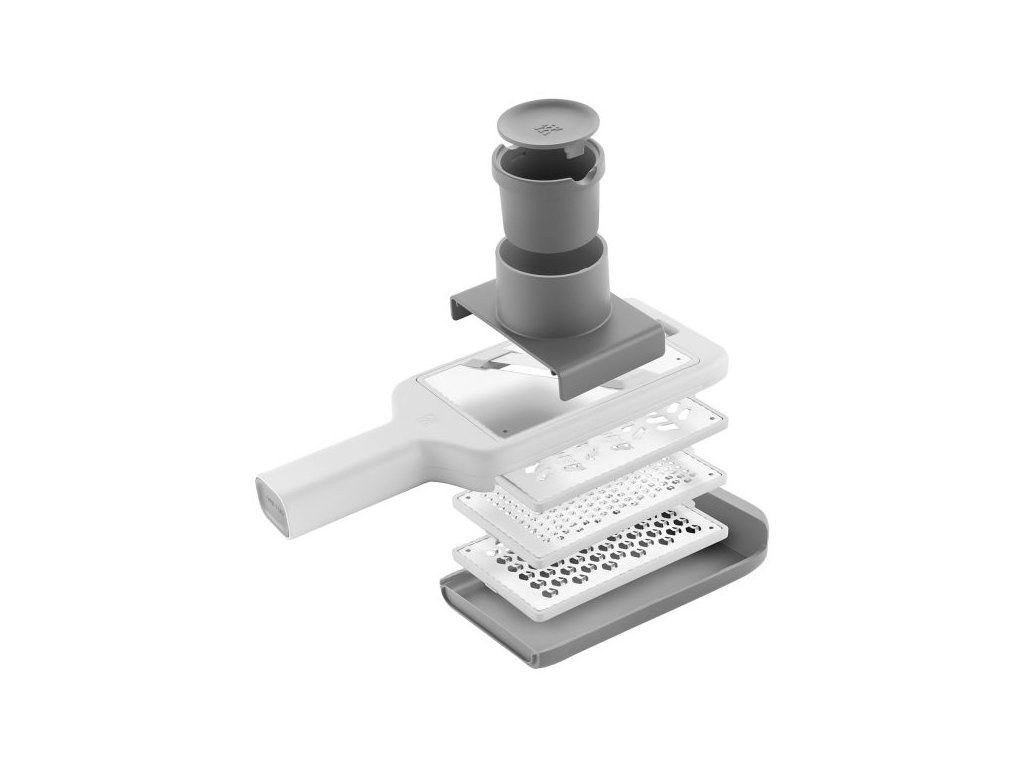 - Sada obsahuje 4 vymeniteľné nože - jemné, stredné a hrubé strúhadlo, brit