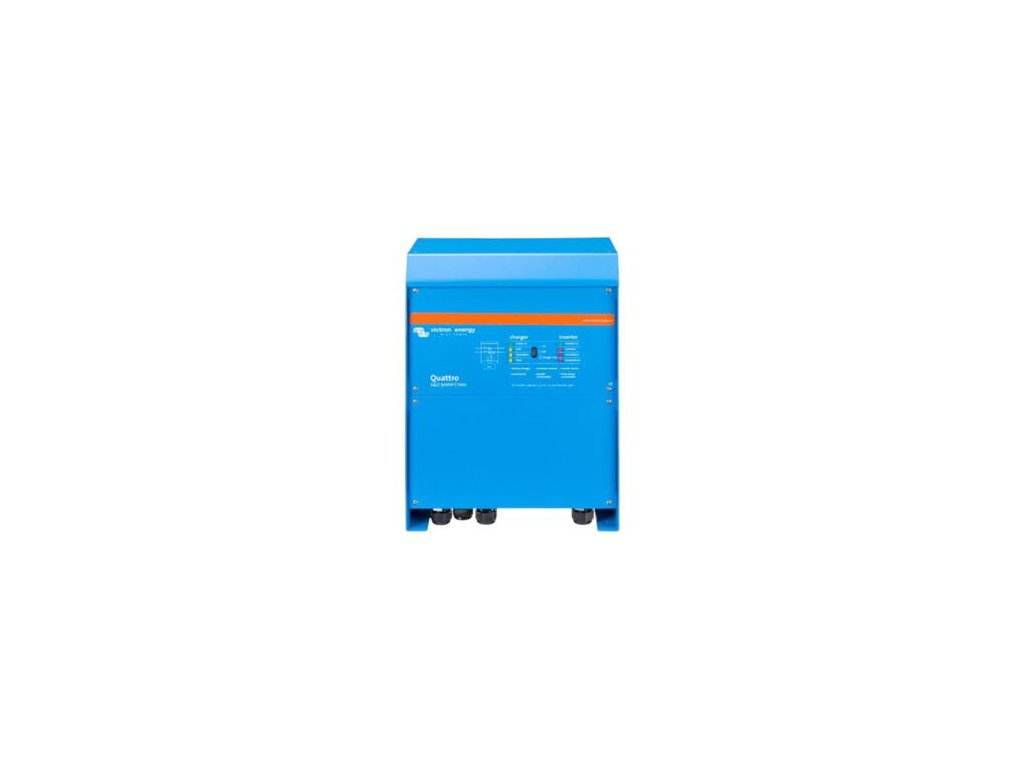 MultifunkčnýMenič/nabíjačka Quattro je výkonný menič DC-AC s čistým sínusovým výstupným napätím, sofistikovanou adaptívnou nabíjačkou batérií a ultra rýchlym prepínačom napájacej slučky. Menič je umiestnený v kompaktnom hliníkovom kryte. Tento modelový rad je k dispozícii vo výkonoch 3000VA-10000VA. Dva striedavé vstupyQuattro je vybavený dvoma navzájom nezávislými striedavými vstupmi (hlavný rozdiel oproti sérii MultiPlus) ako sieťový a generátorový alebo dva generátory. Jednotka sa v prípade potreby dokáže automaticky pripojiť k aktuálne dostupnému zdroju napájania.dva výstupy striedavého prúduQuattro je štandardne vybavený dvoma výstupmi striedavého prúdu. Hlavný výstup je vybavený funkciou, ktorá zabezpečuje napájanie bez prerušenia. Zariadenie Quattro prevezme napájanie pripojených spotrebičov v prípade výpadku elektrickej siete alebo generátora. To sa deje tak rýchlo (menej ako 20 milisekúnd), že počítače a iné elektronické zariadenia budú naďalej fungovať bez prerušenia.Dodatočné parametre