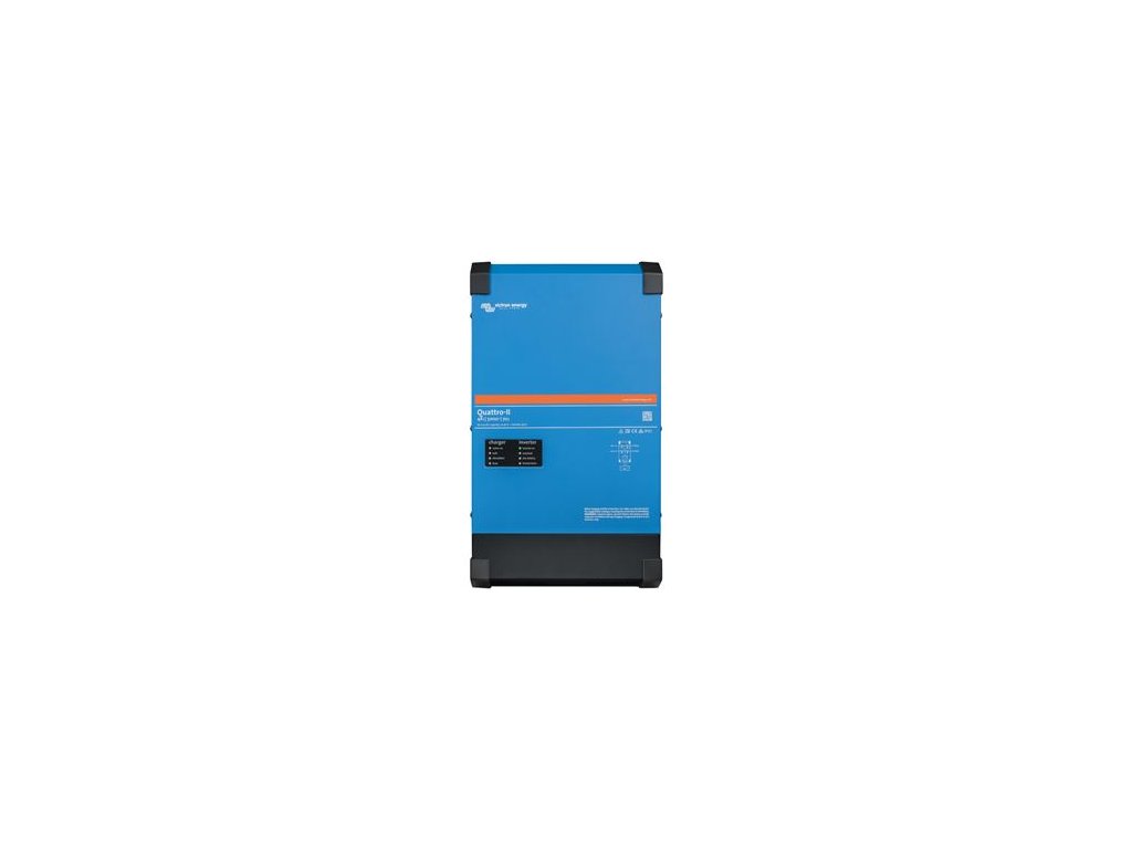 Multifunkčné zariadenie Rovnako ako zariadenie MultiPlus-II je aj zariadenie Quattro-II kombinovaným zariadením, ktoré obsahuje menič a nabíjačku. Okrem toho ponúka dva vstupy striedavého prúdu a automaticky sa pripája k aktívnemu napájaciemu zdroju. funkcie zahŕňajú menič napätia (čistá sínusoida), adaptívnu nabíjačku, hybridnú technológiu PowerAssist a ďalšie funkcie systémovej integrácie. Ponúka trojfázovú aj paralelnú prevádzku. Dva striedavé vstupyQuattro II disponuje dvoma navzájom nezávislými striedavými vstupmi (hlavný rozdiel oproti sérii MultiPlus II) ako sieť a generátor alebo dva generátory. Zariadenie sa v prípade potreby dokáže automaticky pripojiť k aktuálne dostupnému zdroju napájania. Dva striedavé výstupyQuattro je štandardne vybavené dvoma striedavými výstupmi. Hlavný výstup je vybavený funkciou, ktorá zabezpečuje napájanie bez prerušenia. Zariadenie Quattro prevezme napájanie pripojených spotrebičov v prípade výpadku elektrickej siete alebo generátora.Dodatočné parametre