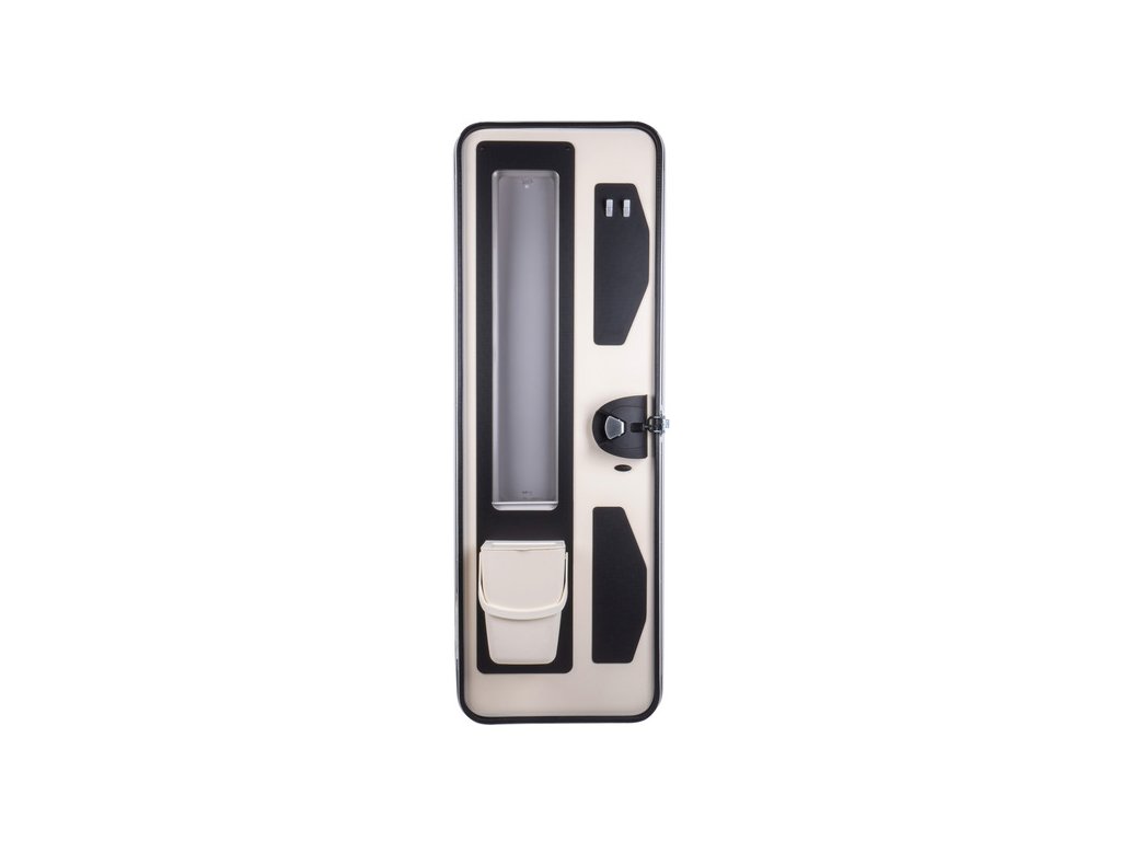 Praktický a priestorovo úsporný odpadkový kôš určený na montáž na vnútornú stranu dverí v obytnom vozidle či karavane.