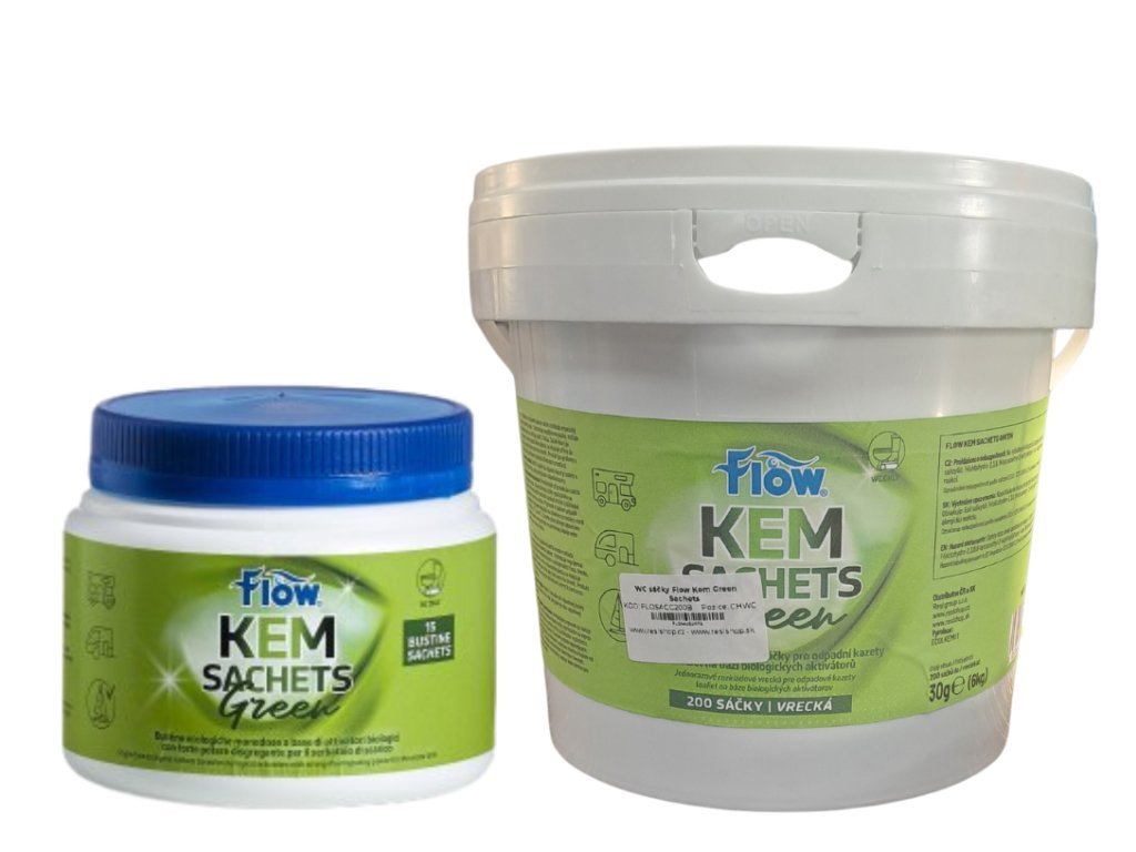Vodou rozpustné WC vrecká Flow Kem Green do odpadových nádrží s vôňou lesa
