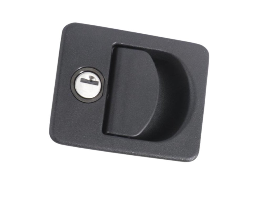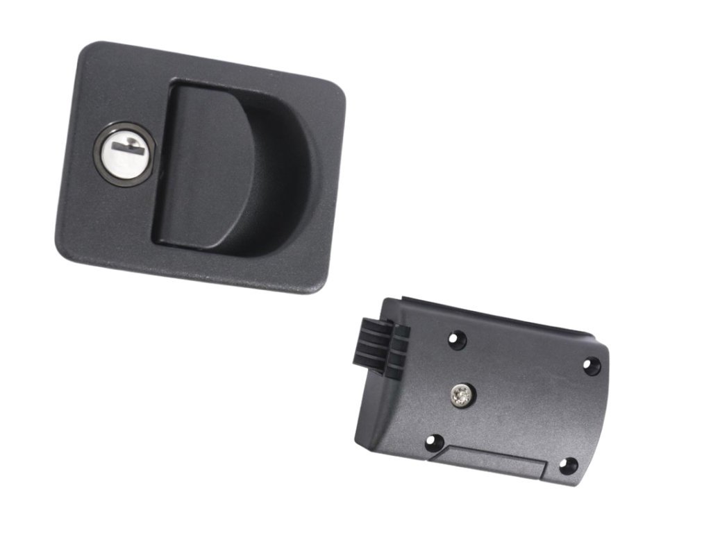 Zámok pre zadnú garáž obytného vozidla so zapustenou rukoväťou.