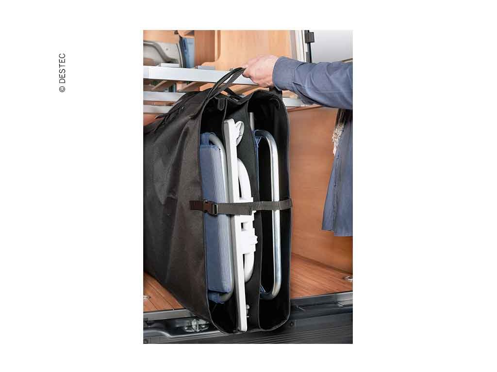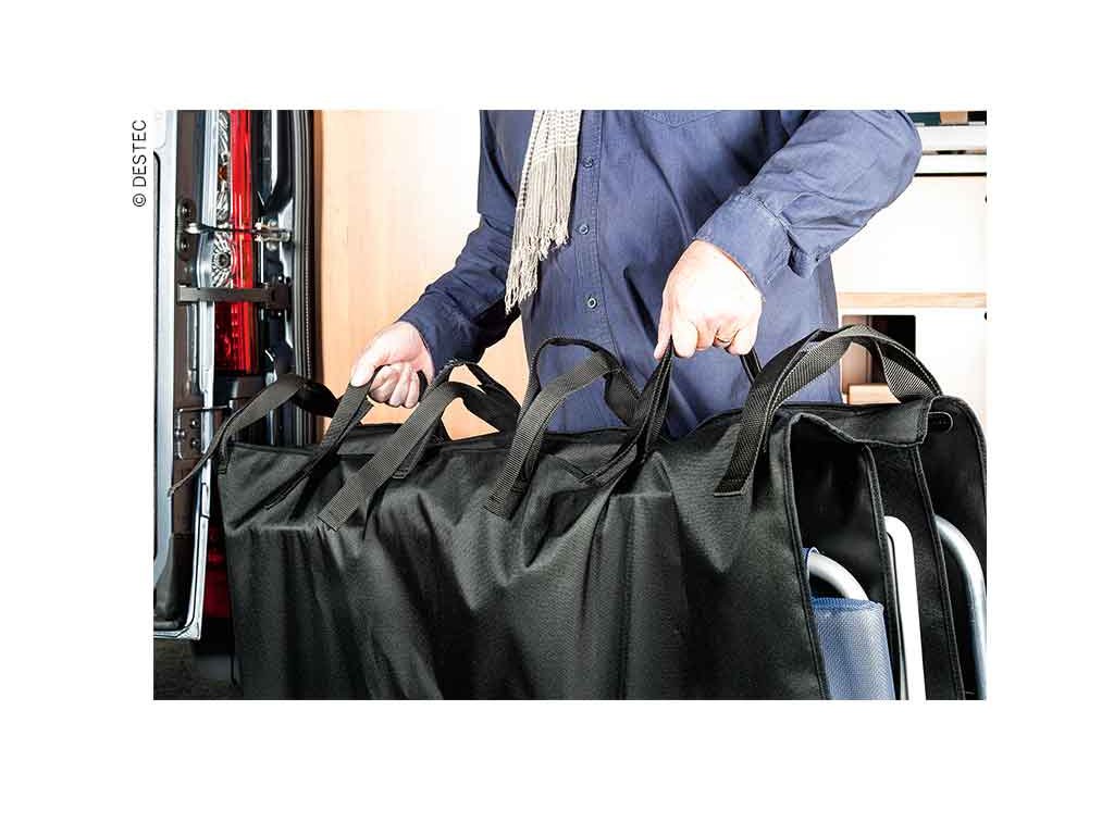 - Bezpečnostný popruh s kvalitným zacvakávacím uzáverom slúži na upevnenie objemného kempingového nábytku