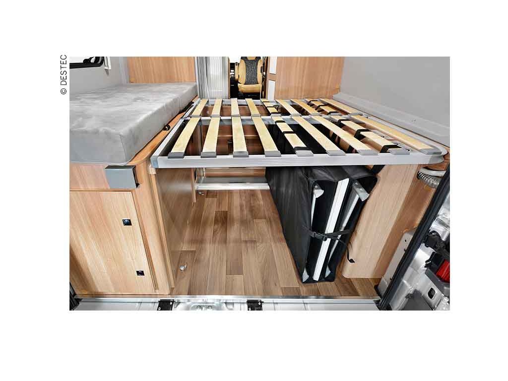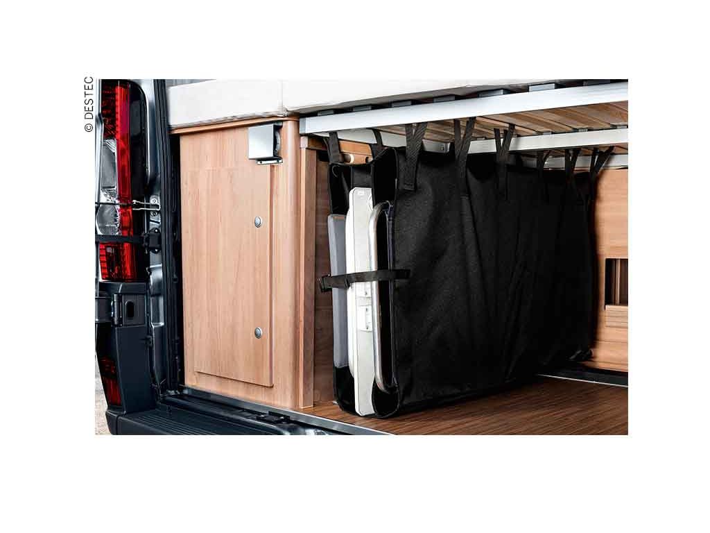 Veľmi praktický a odolný úložný box navrhnutý špeciálne na montáž pod zadnú posteľ v obytných vozidlách alebo vstavbách.